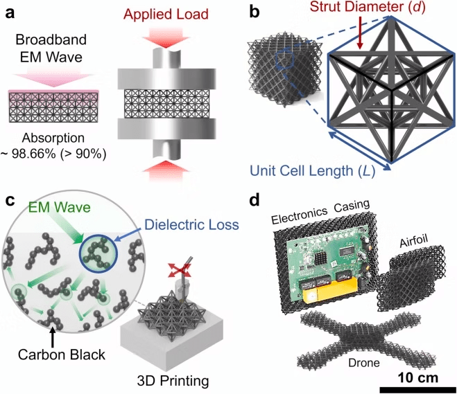 • BMMAs consist of multi-layered, octet-truss cells of carbon black-based composites.