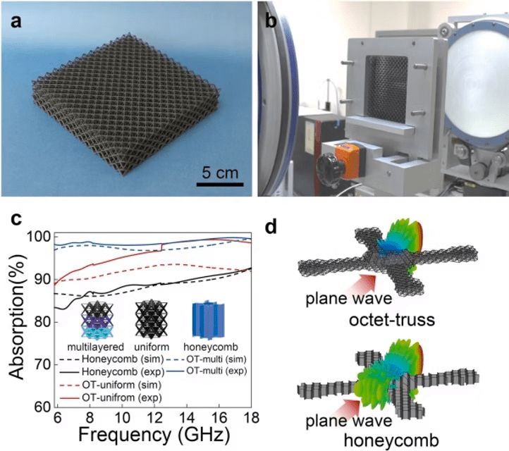 • 3D printed BMMAs achieve > 90% absorbance (~98.66% on average) for 5.8–18 GHz.