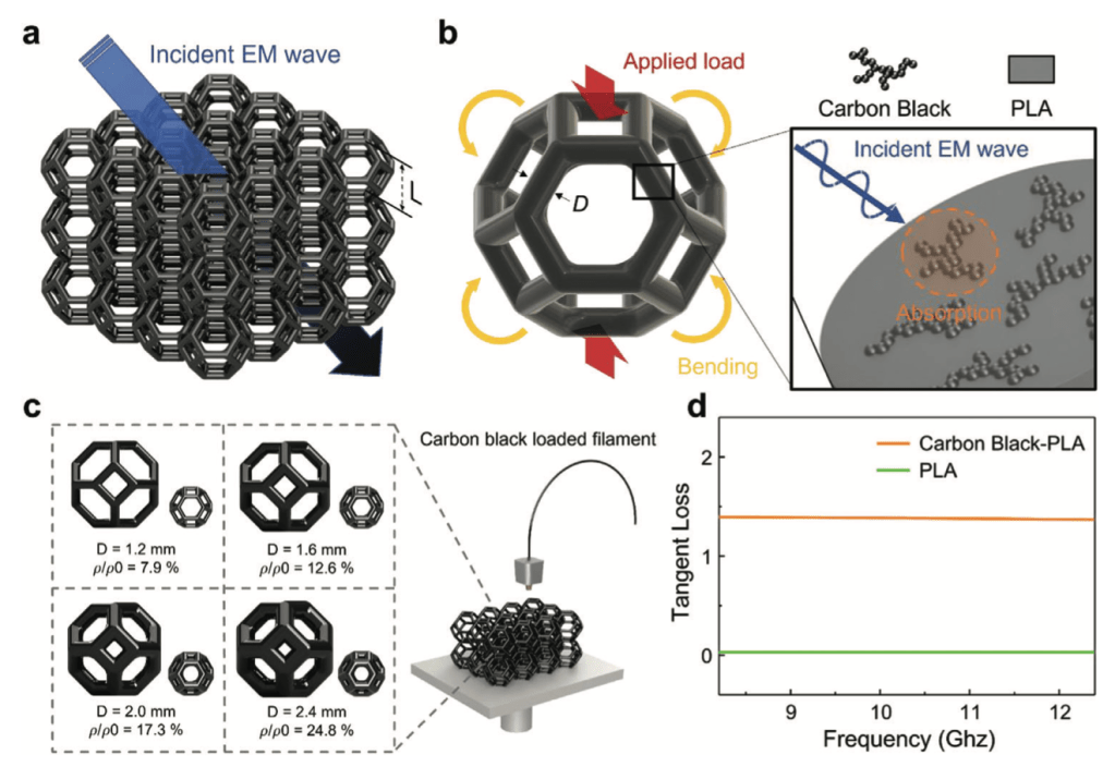 Lee. J.W.‡, Lim. D. D.‡, Park. J.W., Lee. J.M., Noh. D.W., Gu, G. X.*, Choi. W.*; Multifunctionality of additively manufactured Kelvin foam for electromagnetic wave absorption and load bearing, Small, 2023 [Link]