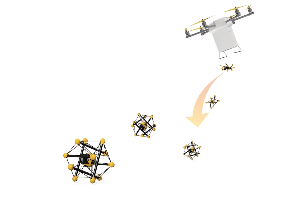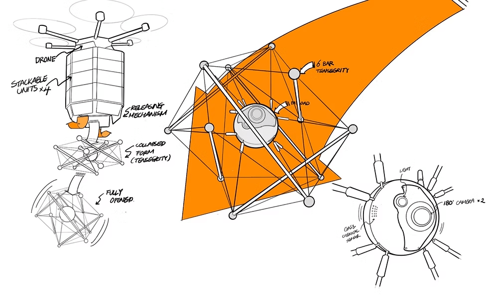 This is a design concept of Tensegrity robot from Squishy robotics with its deployable sensor for disaster area.